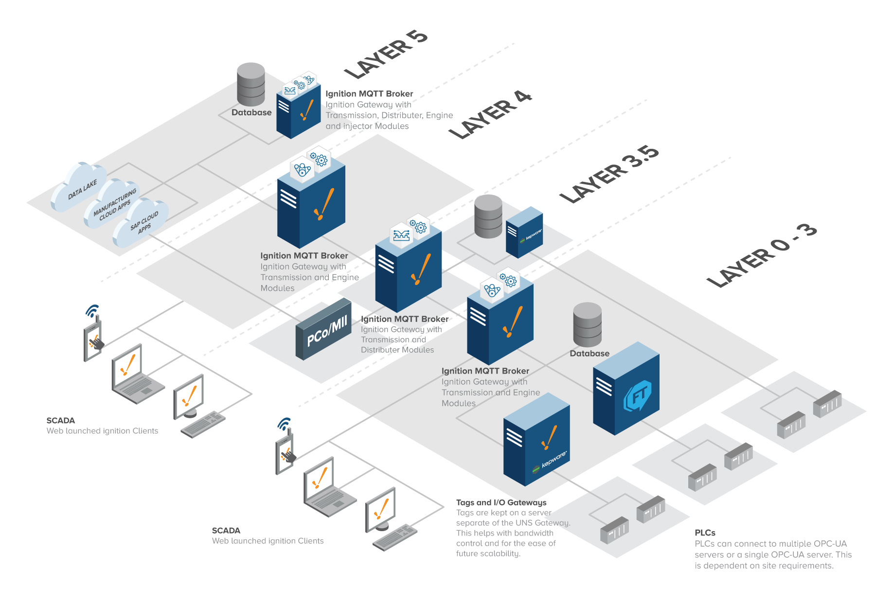 Our network designs typically align to this model, while being tailored to your unique process, security requirements, and corporate IT policies.